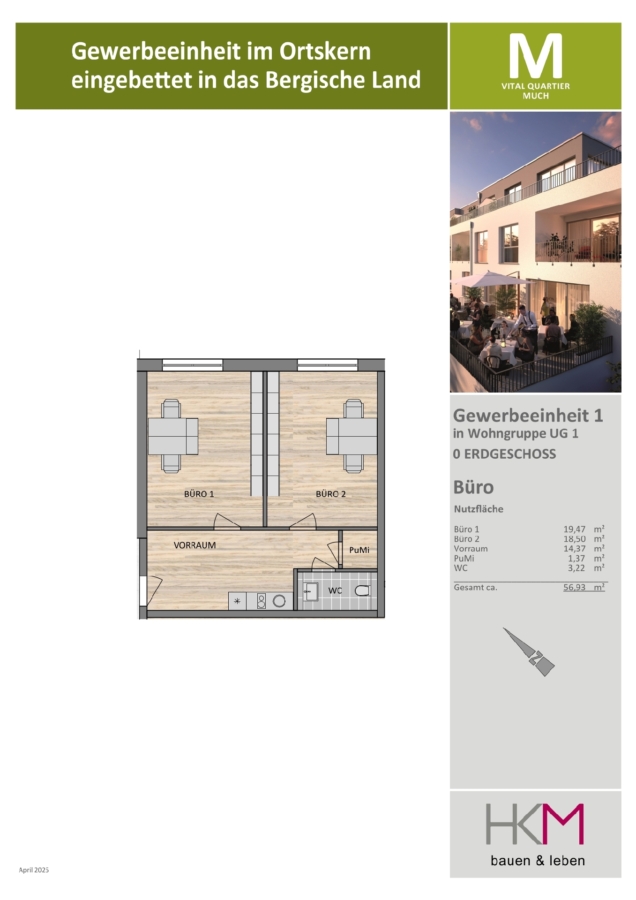 Der Gebäudekomplex im Bauabschnitt I wird aus 41 betreuten Wohnungen mit ca. 52 bis 81 m² für 1-/2-Personen-Haushalte bestehen, des Weiteren sind hier 19 Tagespflegeplätze und ein ambulanter Pflegedienst geplant. Zusätzlich ist eine solitäre Kurzzeitpflege mit 24 Plätzen geplant. Das für alle zugängliche Café-Restaurant Vier Jahreszeiten rundet das Angebot des VITAL QUARTIER MUCH ab. Im VITAL QUARTIER MUCH können Investoren unterschiedlich große Seniorenwohnungen nach dem WEG-Modell erwerben. Sie erhalten vom Betreiber einen Pachtvertrag mit einer 25-jährigen Festlaufzeit, mit einer Indexierung und einer 5-jährigen Verlängerungsoption. Der Betreiber zahlt dem Investor eine anfängliche Pacht, aus der sich für den Anleger eine anfängliche Bruttopachtrendite zwischen 3,70 % und 4,55 % p.a., bezogen auf den Kaufpreis, ergibt. Nach Fertigstellung des Bauvorhabens und Übergabe an den Betreiber werden die Sondereigentumseinheiten an die Investoren übergeben. Bei einer Eigenkapitalhinterlegung von 20 % ergeben sich Eigenkapitalrenditen im Mittel auf 10Jahre in Höhe von bis zu 10,47 % p.a. Bauobjekt. Direkt angrenzend an das Gemeindezentrum von Much entsteht das VITAL QUARTIER. Die Planung des Bauabschnittes I des VITAL QUARTIER MUCH wurde auf die speziellen Belange des Betreiberkonzeptes des Senioren-Parks carpe diem ausgerichtet. Eine optimale Betriebsführung, die für den Pächter und die Investoren eine sichere Rendite bedeutet, wird so erreicht. Der Kaufpreis ist ein Festpreis. Er beinhaltet die schlüsselfertige Erstellung und die kompletten Erschließungsanlagen.Des Weiteren sind die Gestaltung und Erstellung der Außenanlagen und das Inventar im Kaufpreis inbegriffen, wobei der Umfang des Inventars je nach Einheit variieren kann.