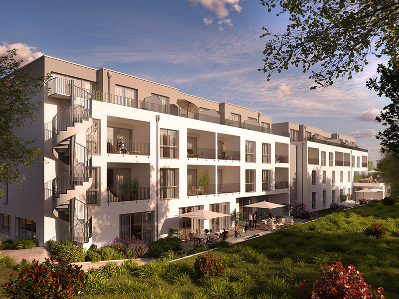 Alle Treppenhäuser werden in Stahlbeton gemäß Statik und den Anforderungen des Brand- und Schallschutzes ausgeführt.