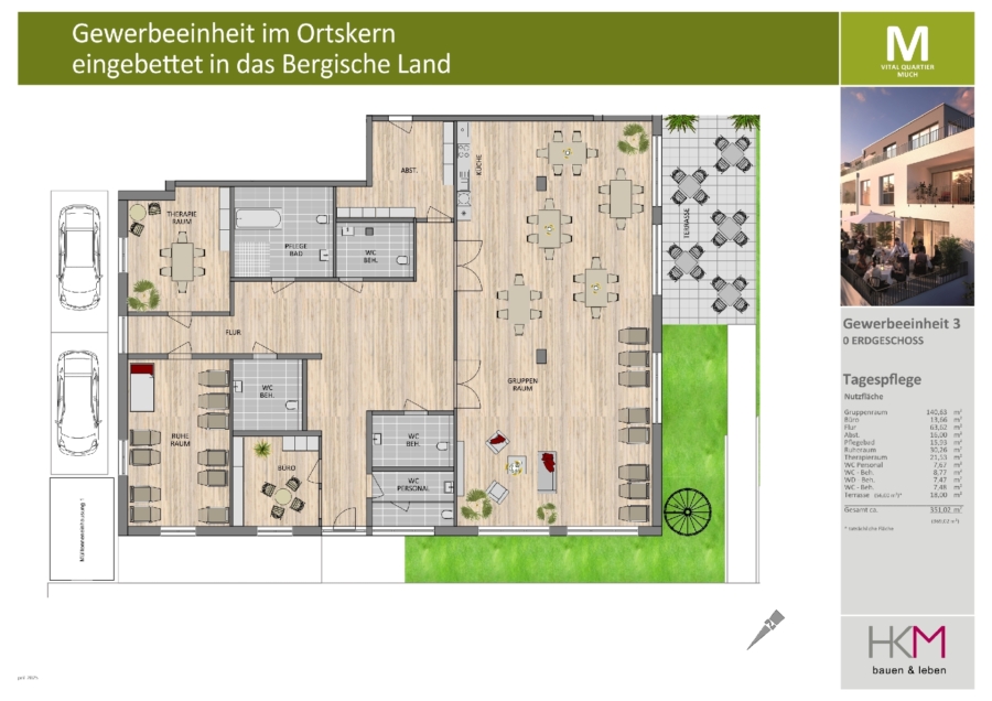 Der Gebäudekomplex im Bauabschnitt I wird aus 41 betreuten Wohnungen mit ca. 52 bis 81 m² für 1-/2-Personen-Haushalte bestehen, des Weiteren sind hier 19 Tagespflegeplätze und ein ambulanter Pflegedienst geplant. Zusätzlich ist eine solitäre Kurzzeitpflege mit 24 Plätzen geplant. Das für alle zugängliche Café-Restaurant „Vier Jahreszeiten“ rundet das Angebot des VITAL QUARTIER MUCH ab. Im VITAL QUARTIER MUCH können Investoren unterschiedlich große Seniorenwohnungen nach dem WEG-Modell erwerben. Sie erhalten vom Betreiber einen Pachtvertrag mit einer 25-jährigen Festlaufzeit, mit einer Indexierung und einer 5-jährigen Verlängerungsoption. Der Betreiber zahlt dem Investor eine anfängliche Pacht, aus der sich für den Anleger eine anfängliche Bruttopachtrendite zwischen 3,70 % und 4,55 % p.a., bezogen auf den Kaufpreis, ergibt. Nach Fertigstellung des Bauvorhabens und Übergabe an den Betreiber werden die Sondereigentumseinheiten an die Investoren übergeben. Bei einer Eigenkapitalhinterlegung von 20 % ergeben sich Eigenkapitalrenditen im Mittel auf 10Jahre in Höhe von bis zu 10,47 % p.a. Bauobjekt. Direkt angrenzend an das Gemeindezentrum von Much entsteht das VITAL QUARTIER. Die Planung des Bauabschnittes I des VITAL QUARTIER MUCH wurde auf die speziellen Belange des Betreiberkonzeptes des Senioren-Parks carpe diem ausgerichtet. Eine optimale Betriebsführung, die für den Pächter und die Investoren eine sichere Rendite bedeutet, wird so erreicht. Der Kaufpreis ist ein Festpreis. Er beinhaltet die schlüsselfertige Erstellung und die kompletten Erschließungsanlagen.Des Weiteren sind die Gestaltung und Erstellung der Außenanlagen und das Inventar im Kaufpreis inbegriffen, wobei der Umfang des Inventars je nach Einheit variieren kann.