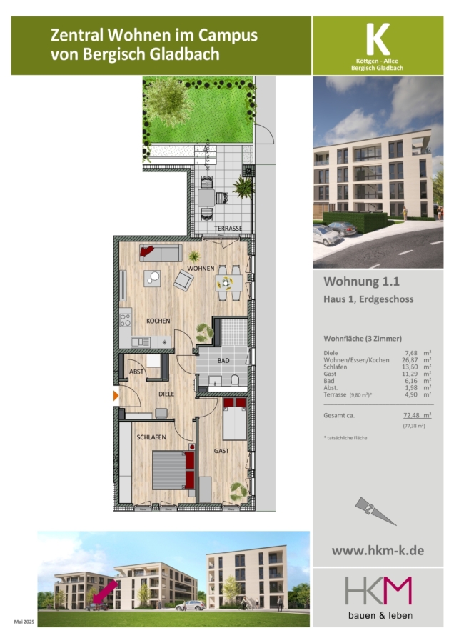 In der Köttgen-Allee entstehen in drei Baukörpern attraktive und moderne 2- bis 4-Zimmer-Eigentumswohnungen mit Wohnungsgrößen von ca. 55 bis 123 m². Die Kombination aus hochwertiger Ausstattung, barrierearmer Bauweise und eigenem Gartenanteil, Loggia oder Dachterrasse machen diese Wohnungen zu einer besonderen Gelegenheit.